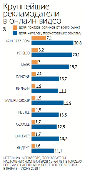 За Joycasino потянулись остальные: «Вулкан», Admiral X и Azino777. Популярность и узнаваемость последнего пришли с роликом Вити АК-47. Мотив и рецепт заработка от рэпера «завирусили», а прилипчивые рифмы попали прямо в сердце народных масс. Mediascope подсчитал: в первой половине 2018-го видео про «три топора» хотя бы раз в месяц посмотрел каждый пятый взрослый житель российских мегаполисов. Само казино ворвалось в топ-20 крупнейших рекламодателей рунета.
